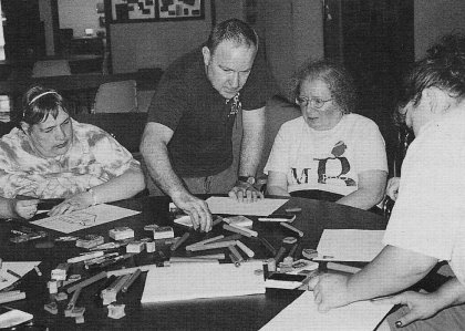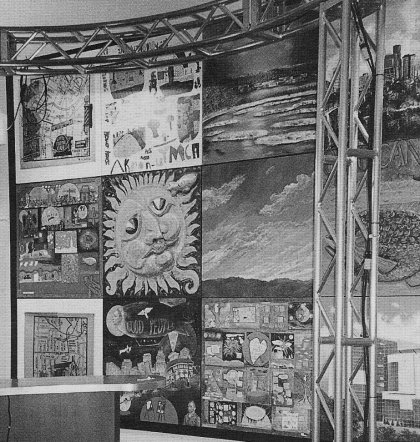 Several consumers from the agency's employment services and SociAbilities programs participated in a unique opportunity to express what Akron means to them. With the guidance of local artist, Dan Cuthbert,consumer were able to create their vision of Akron that was included on panels that make up the new backdrop for the TV23 news set. Two participants in the project represented their fellow artists at a reception held at the station. Channel 23's new studios are located across from the Federal Building in downtown Akron. Cuthbert was so inspired by the experience that he is planning to work on additional projects with consumers in the future including some items to be auctioned at an upcoming Akron Area Arts Alliance event. ![]() Twelve panels created by area artists and nonprofit organizations, including United Disabilities Services (above 2nd line - 1st row & last line - 3rd row), were put together to form one of the backdrops that can be seen behind the anchor desk on Akron's evening news. The panels represent what Akron means to each of the artists who participated in the project. ![]() Artist Dan Cuthbert works with participants of the agency's social/recreational program to help create the art that was used on two of the panels that make up the backdrop for Akron's new newscast on PAX TV23.