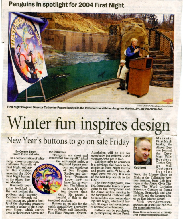 Dover artist Dan Cuthbert will appear at McDonald Nicklaus, a gallery, framing and gift shop at Dover, Sunday from noon to 4. His art will be on display at that time. Cuthbert, a native of Cleveland Heights, has lived in Dover since 1976. Since 1989 he has been giving free art shows for students at Dover Ave. Elementary. During the 1991-1992 school year he and professional writer Bessie Raynor of Akron co-authored a book dealing with viewpoints of life according to 3rd graders at the school. The book is currently under consideration by three major publishing houses. Cuthbert has permanent gallery representation at Don Drumm Studio and Gallery at Akron, Susi's Gallery in Cambridge, Mass., the Michael Stone Collection in Georgetown, Washington, D. C. and McDonald Nicklaus. He is now concentrating on making furniture with Dover resident Randy Hayfield (sic). He (sic) artwork is drawn directly onto the furniture and the sealed for everyday use.