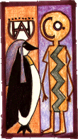 Dan Cuthbert, a self-taught artist, lets his prolific imagination wander freely on his truly one-of-a-kind pieces. Each work has it's own pictorial theme that Dan develops in mixed media (pencils, paints, etc.), then protectively seals. Woodworkers David and Loretta Layfield provide Dan with clocks, tables, and toys to colorfully finish. "Since I value the stories as much as my drawings, I like to discuss color and content with customers," says Dan of his work.