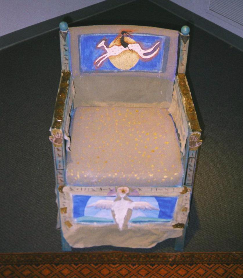 This is the seat in which the Sachem greeted unknown dignitaries. On it's side is shown the guardian Peng-Ra. The arms of the chair are covered in the skin of the Great Snake.